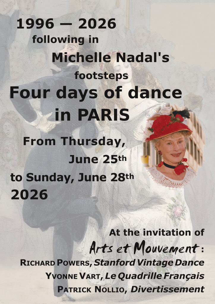 In June 2026, Arts et Mouvement and its partners will be delighted to welcome you, invite you to dance with Richard Powers (Standford Vintage Dance), Yvonne Vart (Le Quadrille Français), and Patrick Nollio (Divertissement), and share memories and friendship.